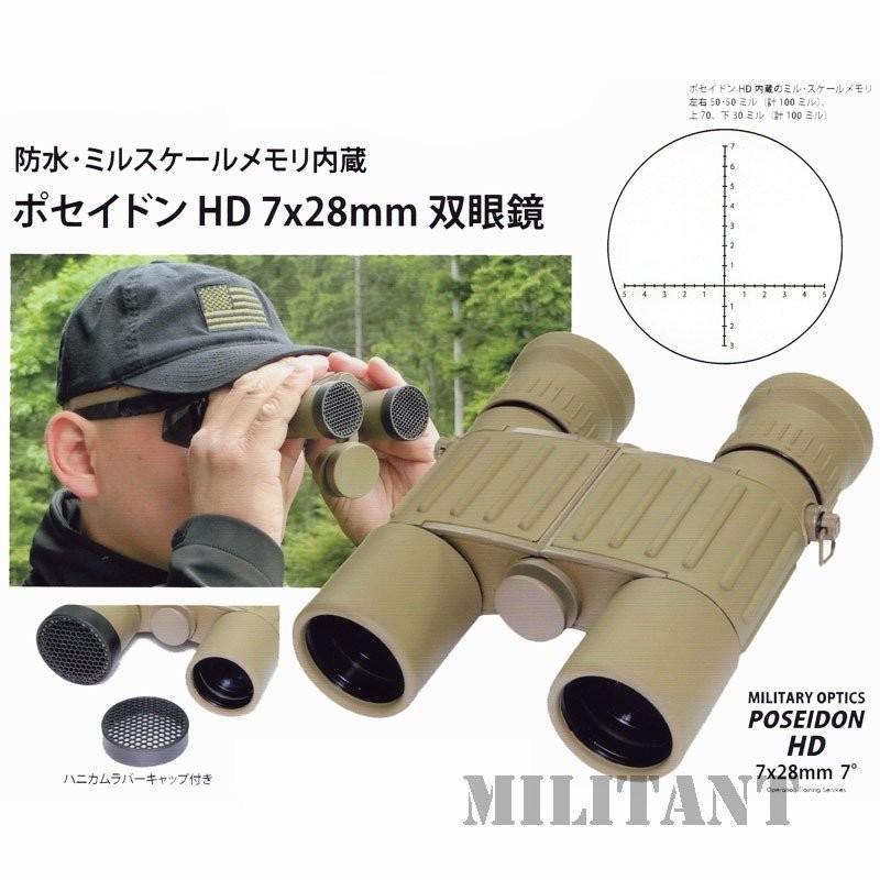 ミリタリーカラーの流行色デザートタンカラーの防水ミルスケール内蔵双眼鏡です。当店で販売中のPOSEIDONミル付き双眼鏡の高性能バージョンHD(