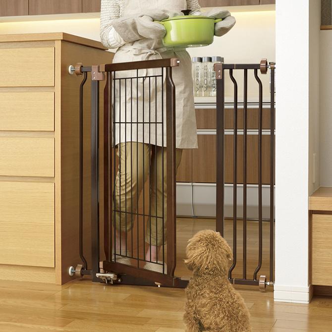 足でも手でも簡単に開閉できるペット用ゲート備考:足でも手でも簡単に開閉できるペット用ゲート。足だけでも開けられるので、両手がふさがっている時も使えて便利です。商品サイズ:小型犬