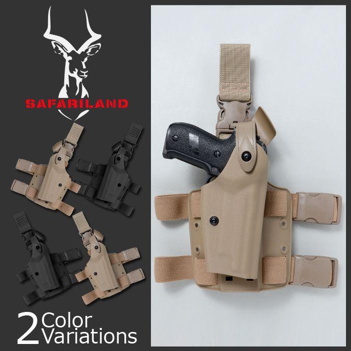 サファリランド製 タクティカルレッグホルスターの6005シリーズです。SLS(セルフ・ロッキングシステム)のガードで不用意に銃が脱落することはありま